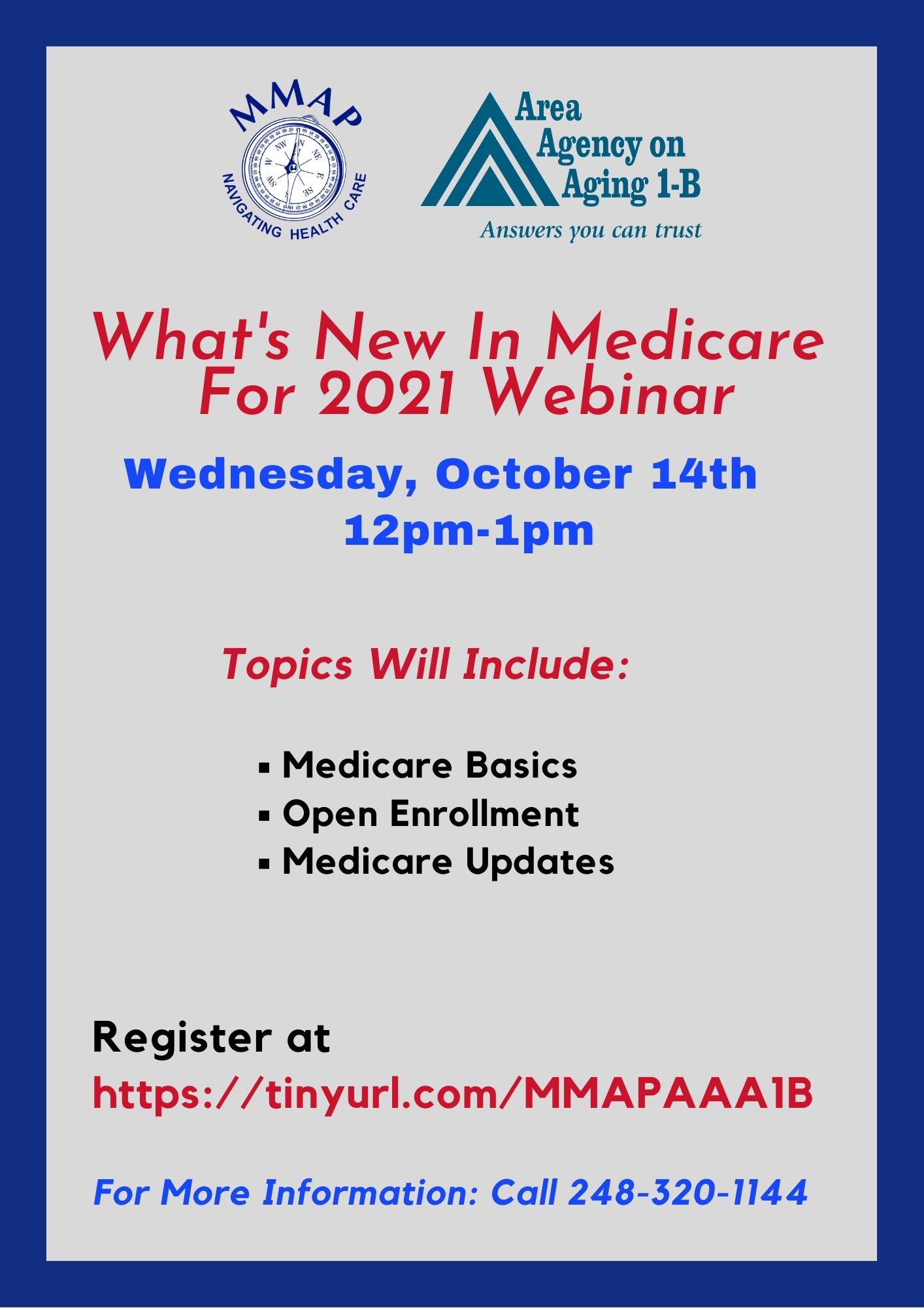 Join the AgeWays’s Medicare Medicaid Assistance Program(MMAP) to learn about Medicare basics, what you need to think about for Open Enrollment, and what’s new for Medicare for 2021. Get the information you’ll need to make choices during Open Enrollment, which runs from October 15 to December 7.